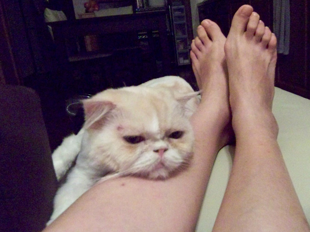 やまねこの昼寝を邪魔しに来られた、大王もっぴゅる。