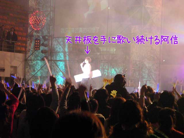 1枚はステージ上に落ちたようで、阿信はその板を拾い上げ脇に