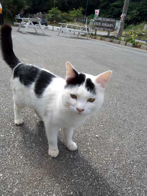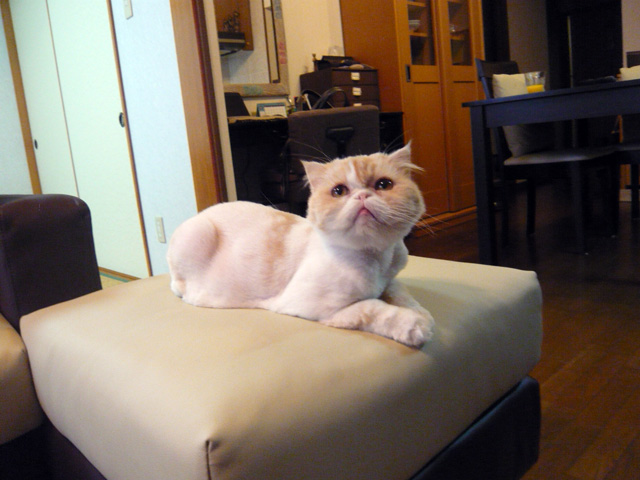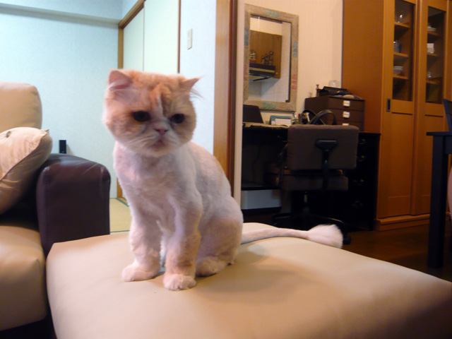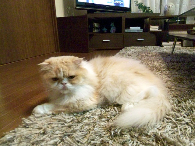 作業中、迷惑そうな表情で離れたところから観察している愛猫もっぴゅる。