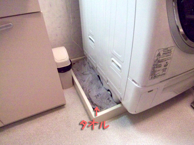 洗濯機パンのところって髪やホコリがたまりがちなので、タオルでカバーしていた