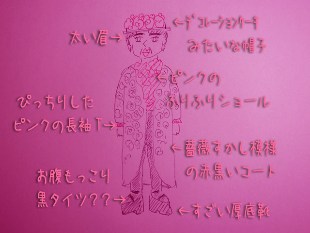 口紅とマニキュアもどピンクで、眉とアイラインは黒々くっきりでした。