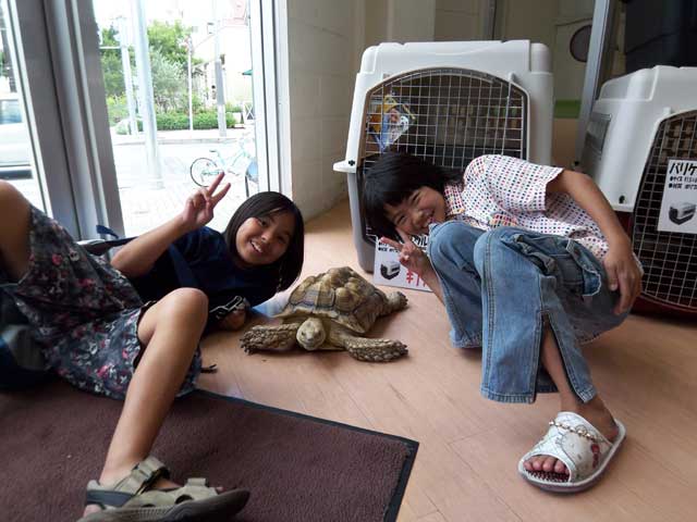 カメくんの大きさがよくわかるように、近くにいたお子ちゃまたちに
