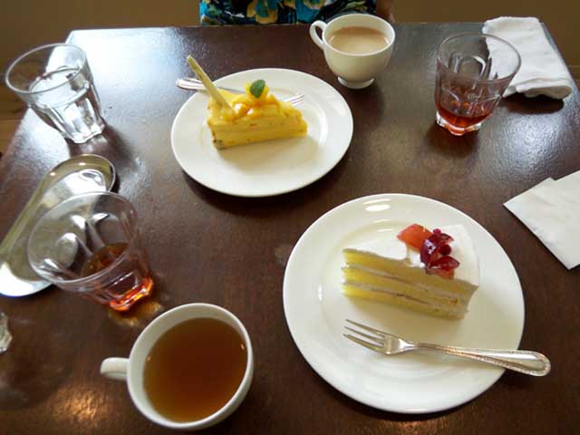 が沖縄でいちばん好きなのです!食後に、すももケーキを食べました。Gちゃんは、マンゴーケーキ。