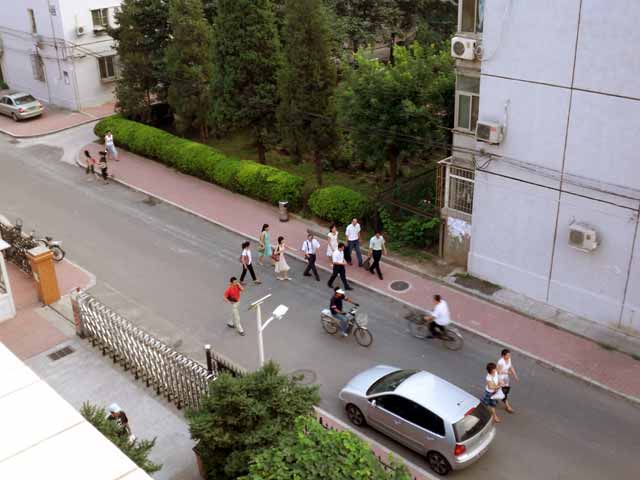 下を眺めると、家路を急ぐ人々の姿。