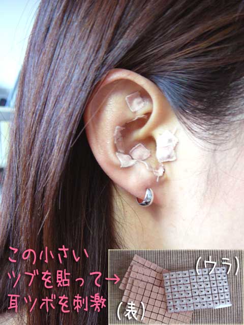 今日はダイエットに効く耳針(正確にはハリではなく小さな丸い玉)