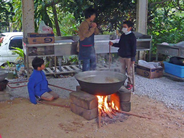 やんばるの方では、今でも、お祝いのときに庭にこのデカ鍋を設置し、